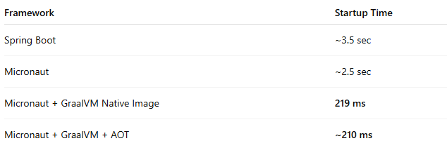 Micronaut applications launch in milliseconds, while GraalVM slashes memory consumption.