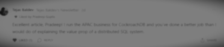 Just four days ago, I shared a deep dive on distributed systems that got a surprising nod from CockroachDB’s APAC head: “This explains distributed SQL better than I could.” And I received a special shoutout in LinkedIn from Senior Manager as well. When experts validate your work, you know you’re telling the right story.