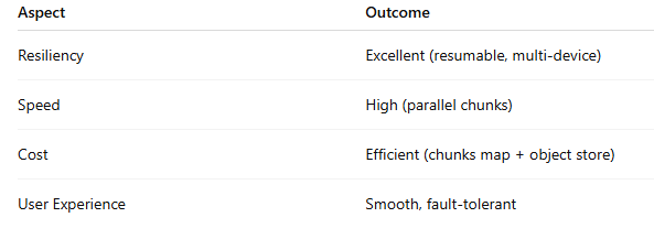 Note: It is useful to separate two ideas: “resumable uploads” and “client-side chunking + parallelism.”